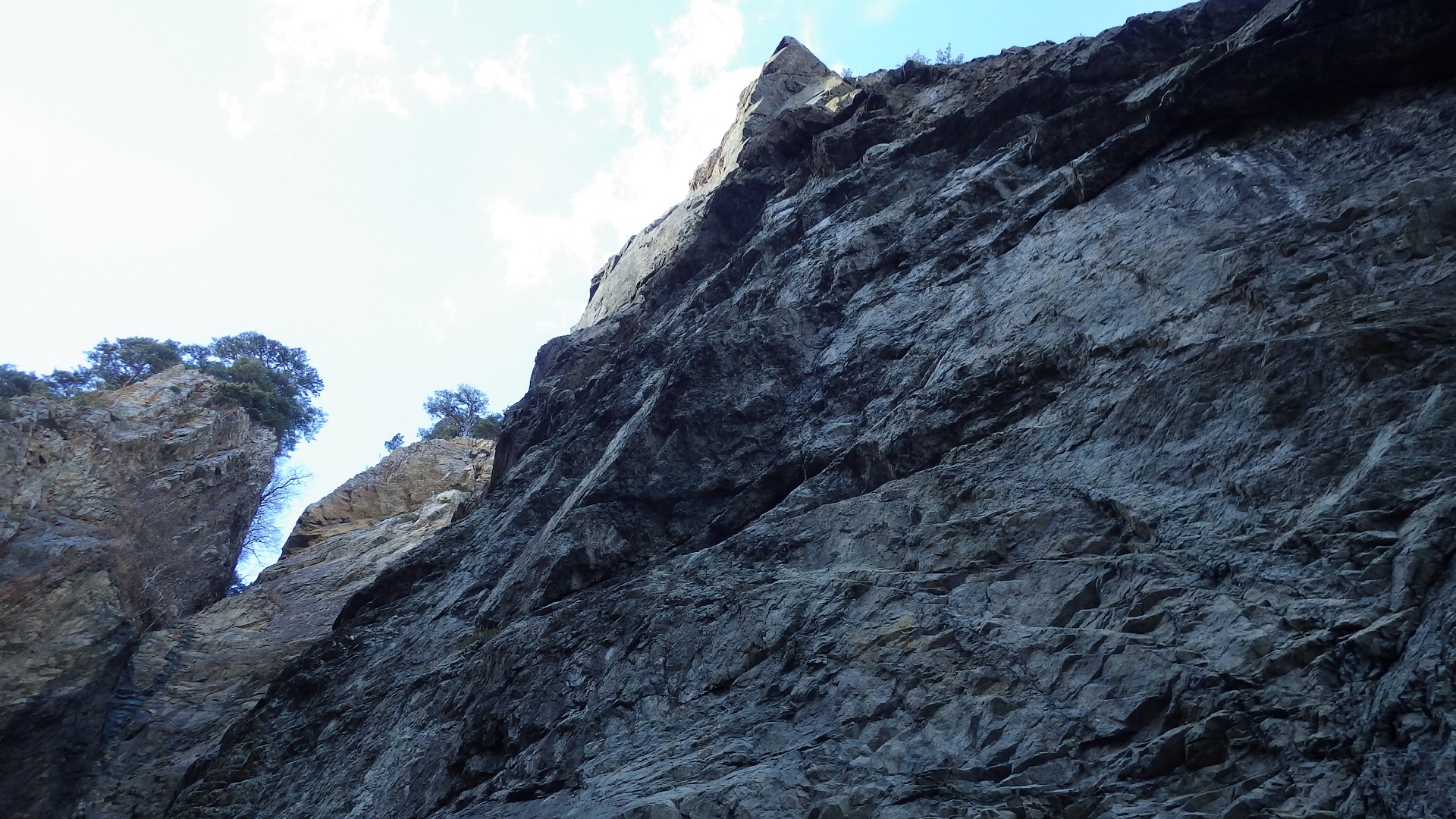 結果から言うと、なんだかんだで降りれた訳ですが上を見上げるとかなり切り立った岩肌だ。
