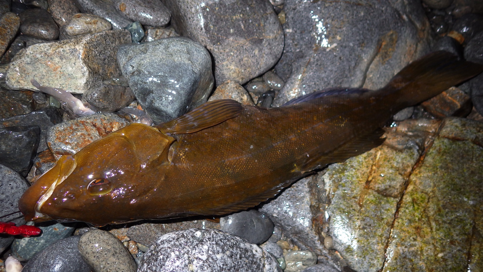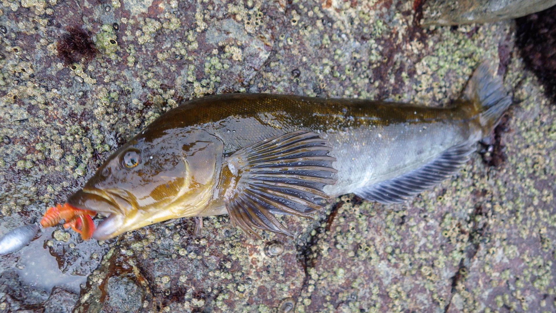 遠浅系の磯で甲殻パターンをリフトアンドフォールでヒット、教科書通りの釣り方で釣った。