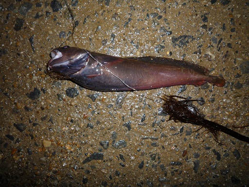 夜なんで餌はサンマの切り身を使い、チョン投げして竿を置いてただけです。
