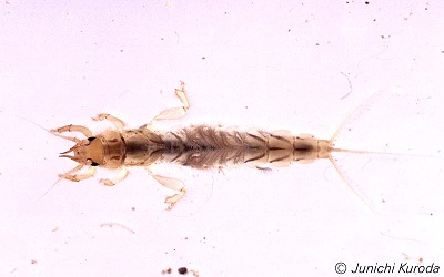 川底の泥の中や石の裏にいろんな虫がひっついてます。