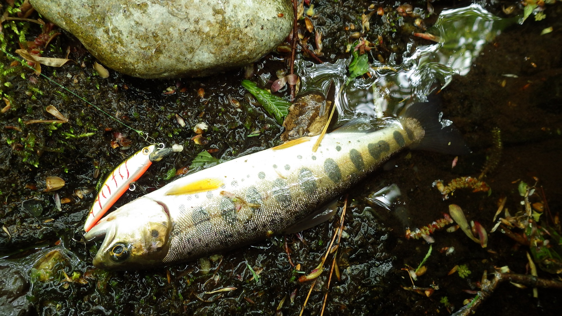 水量が少ないと言っても今の時期なら雪代で多少ではあるが水量が増えている事と、案外ルアー向きなポイントが多いのでルアーでも十分通用する川だと分かった。