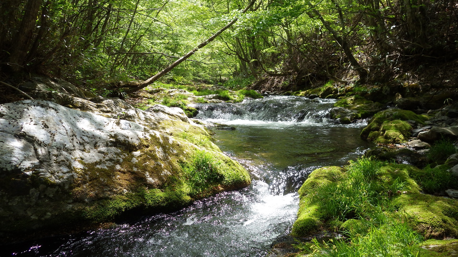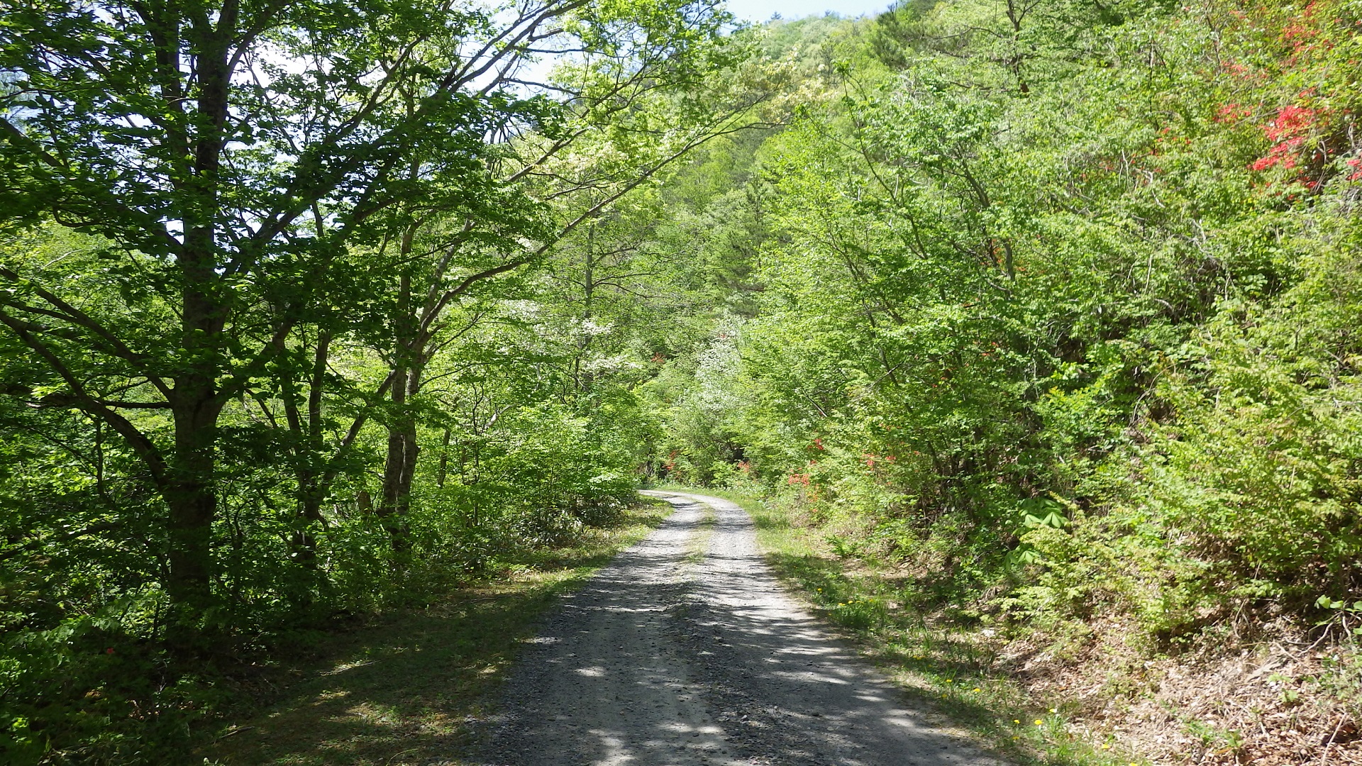 林道や沢沿いは新緑が眩しく気持ちがいい。