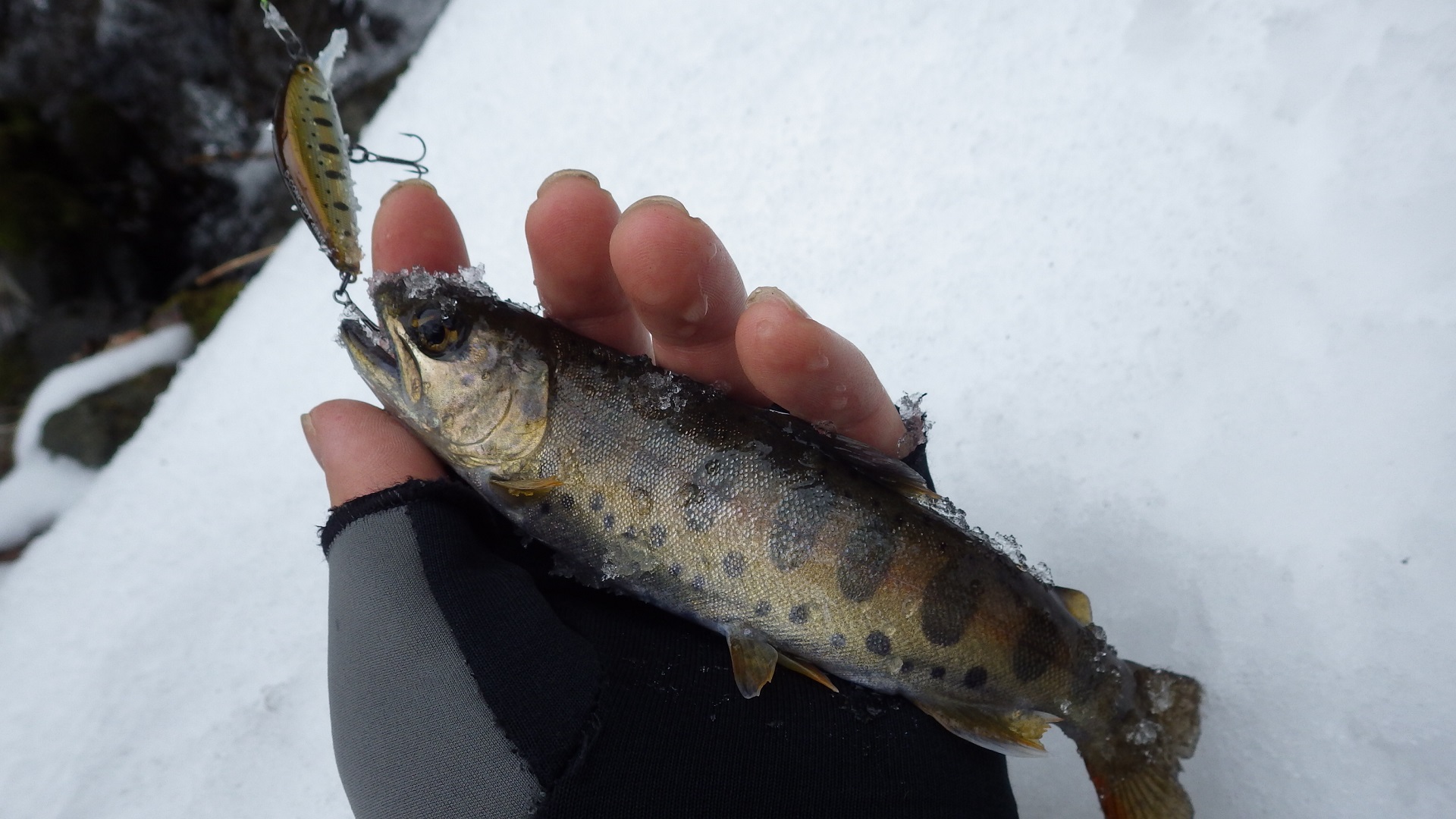水温も低いためヤマメ本来の電撃のようなアタックはまだ見られないようだ。