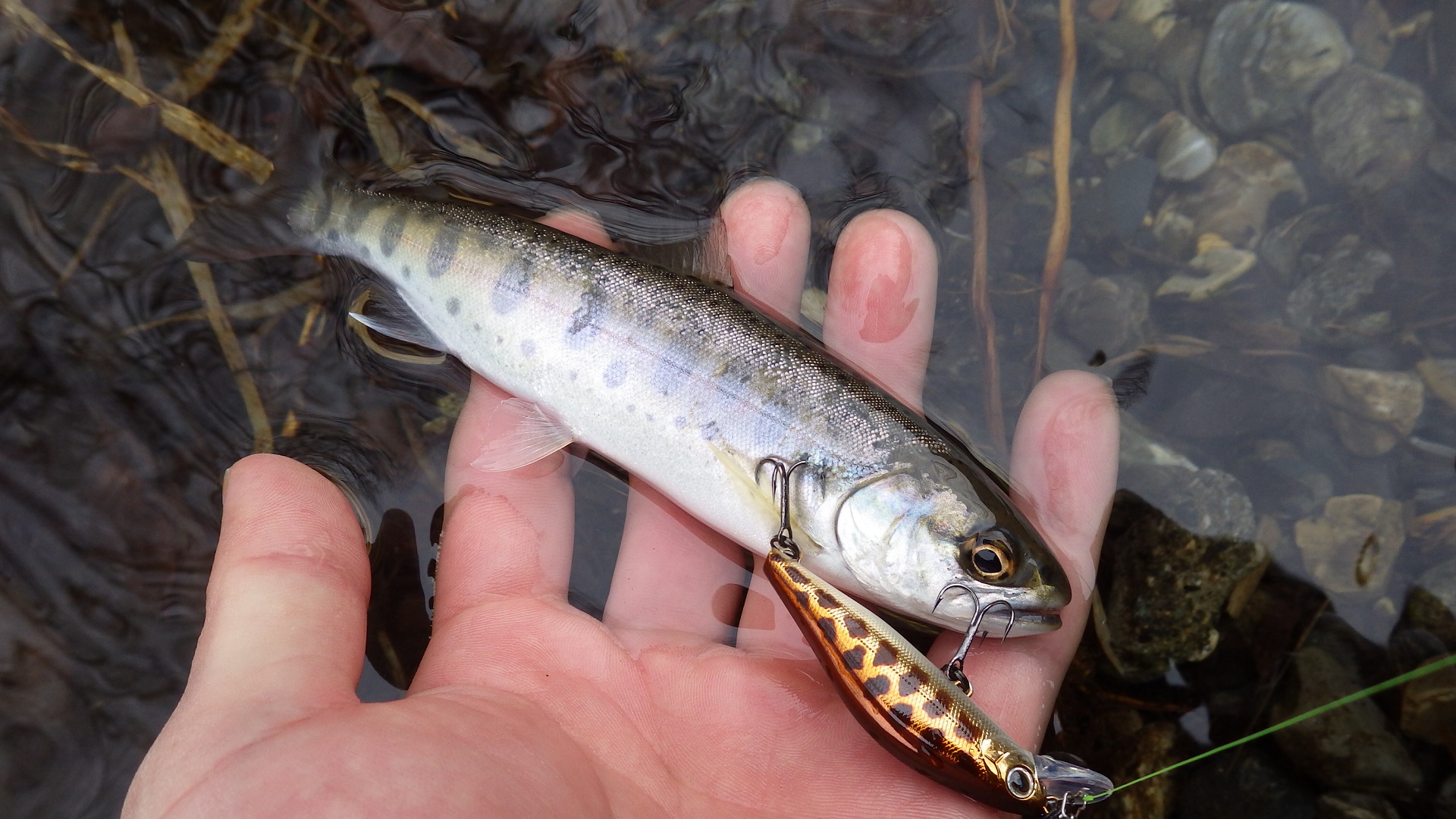 ルアーを流すと去年の秋の稚魚放流と思われる小ヤマメが多数チェイスしてくる。